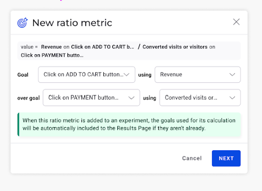 Ratio Metrics are included in both XLSX and raw data exports, allowing you to continue your analysis outside Kameleoon.