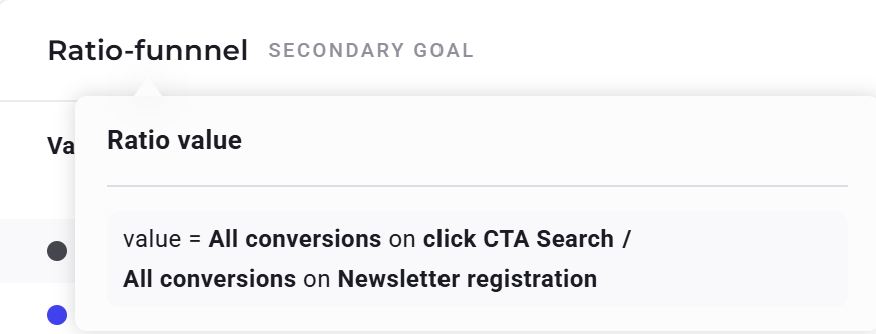 Ratio Metrics let you create goals that compare two existing metrics by dividing one by the other. This feature helps you measure relationships and efficiency indicators, such as: