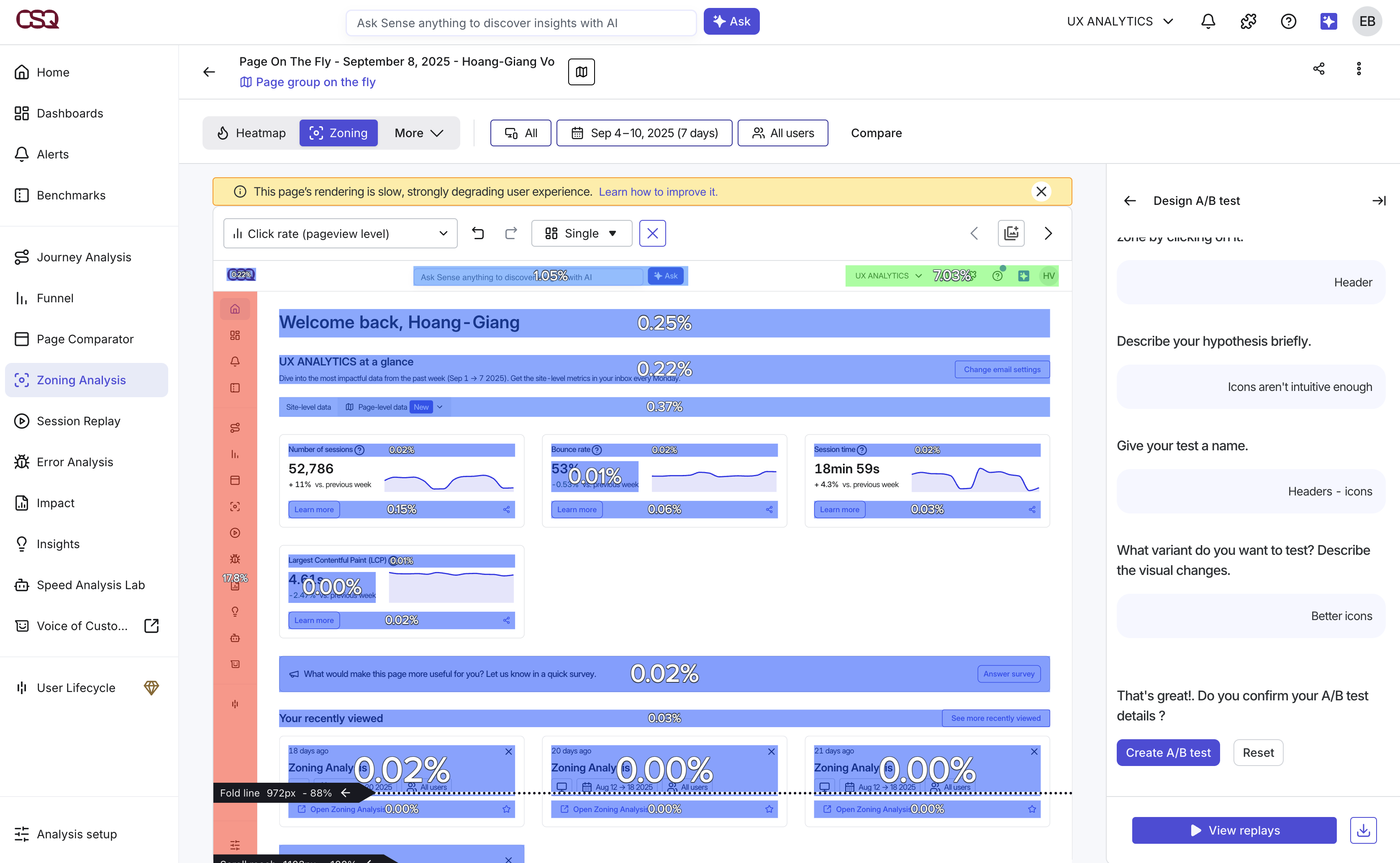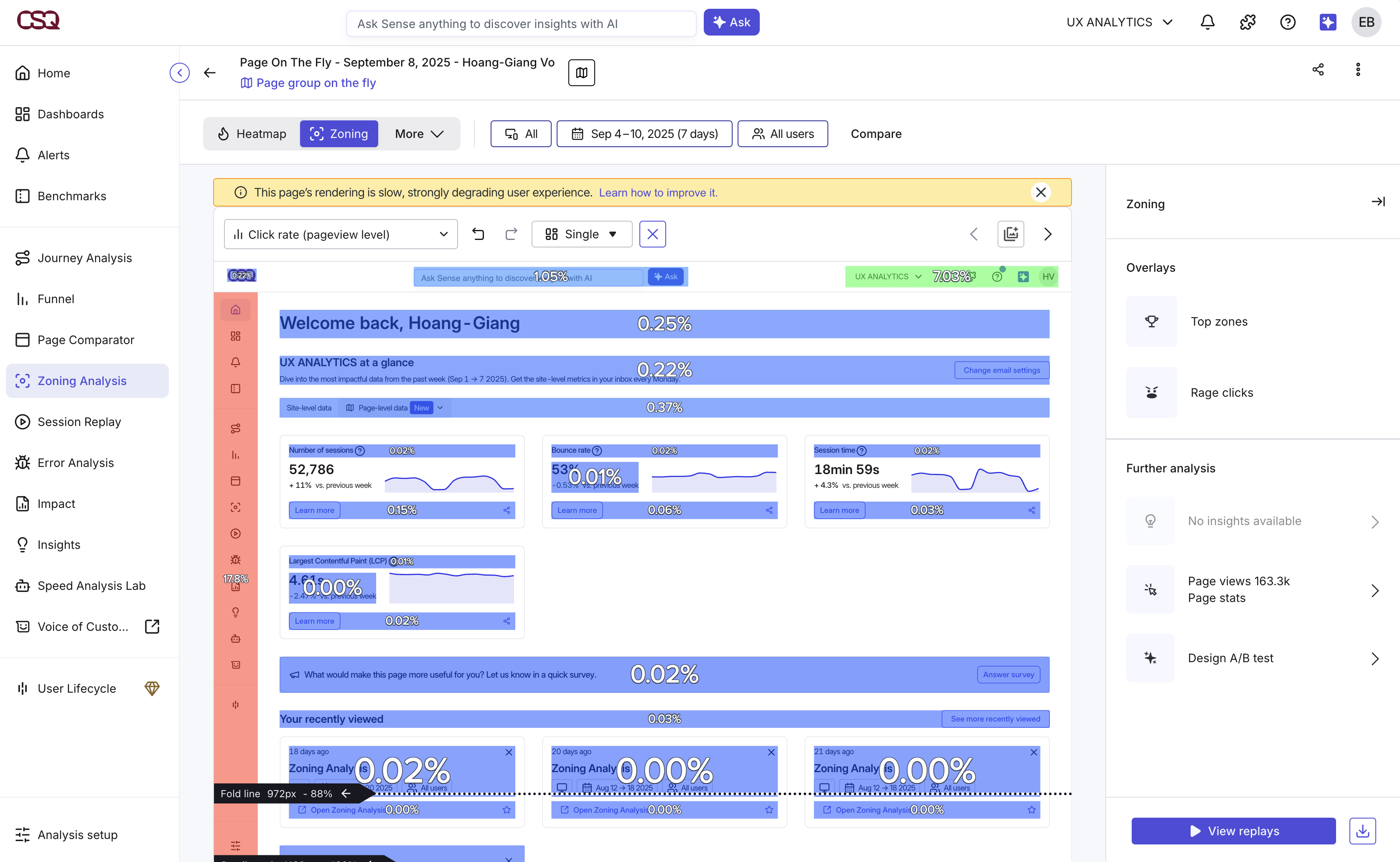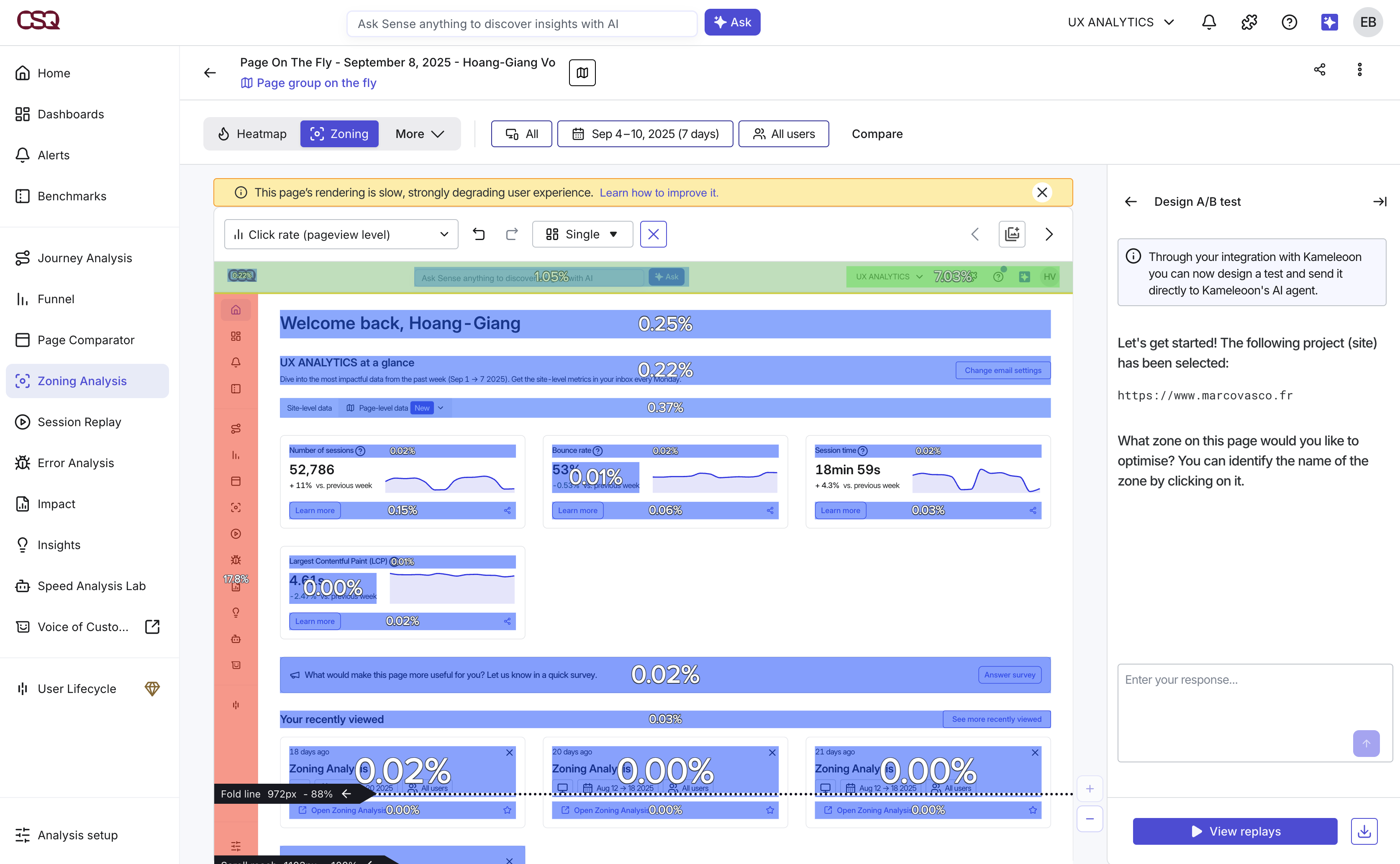 - In Contentsquare, navigate to the Zoning Analysis menu.